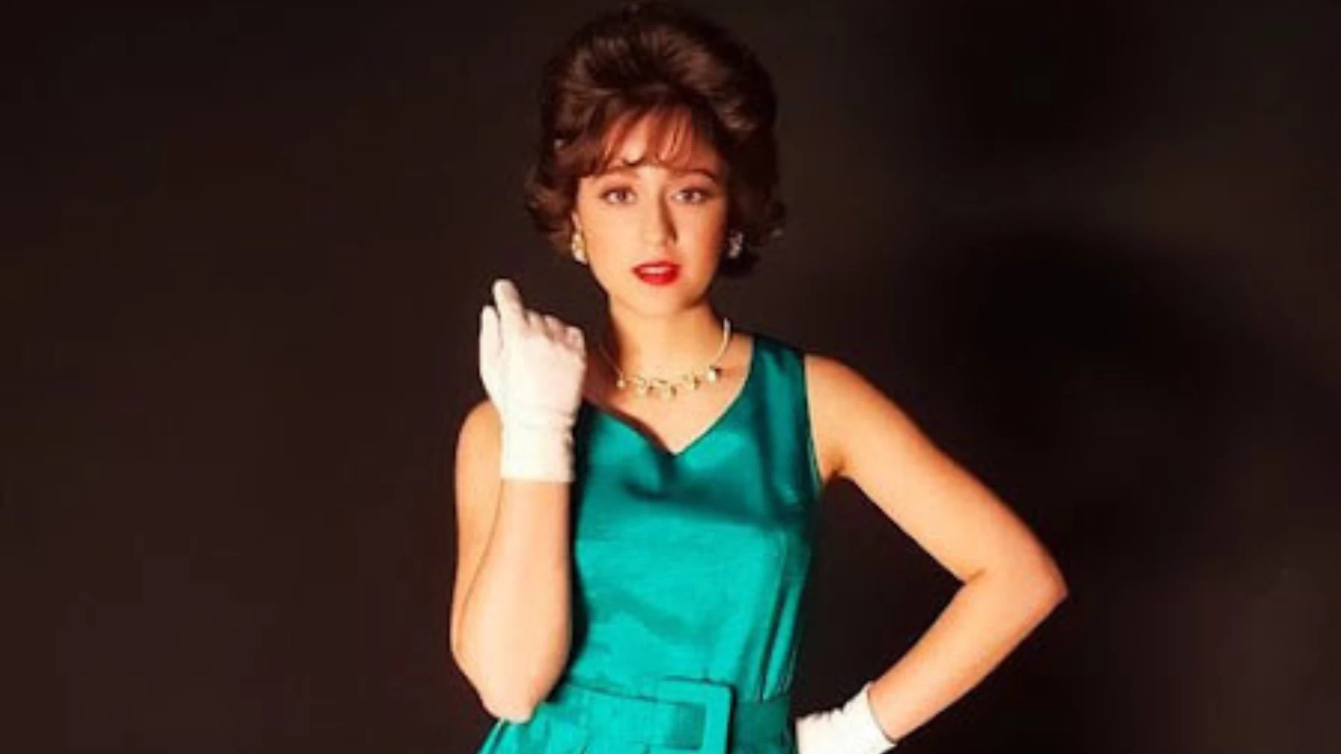 #PraTodosVerem: A primeira imagem mostra o rosto apreensivo de uma mulher de cabelos cacheados; na segunda, uma jovem observa com desconfiança uma mulher mais velha que segura uma mangueira; a terceira apresenta uma família numerosa reunida ao redor de uma mesa de almoço em um jardim; e a quarta destaca uma jovem com visual retrô, usando vestido azul, luvas brancas e penteado clássico sobre um fundo escuro. Fim da descrição.