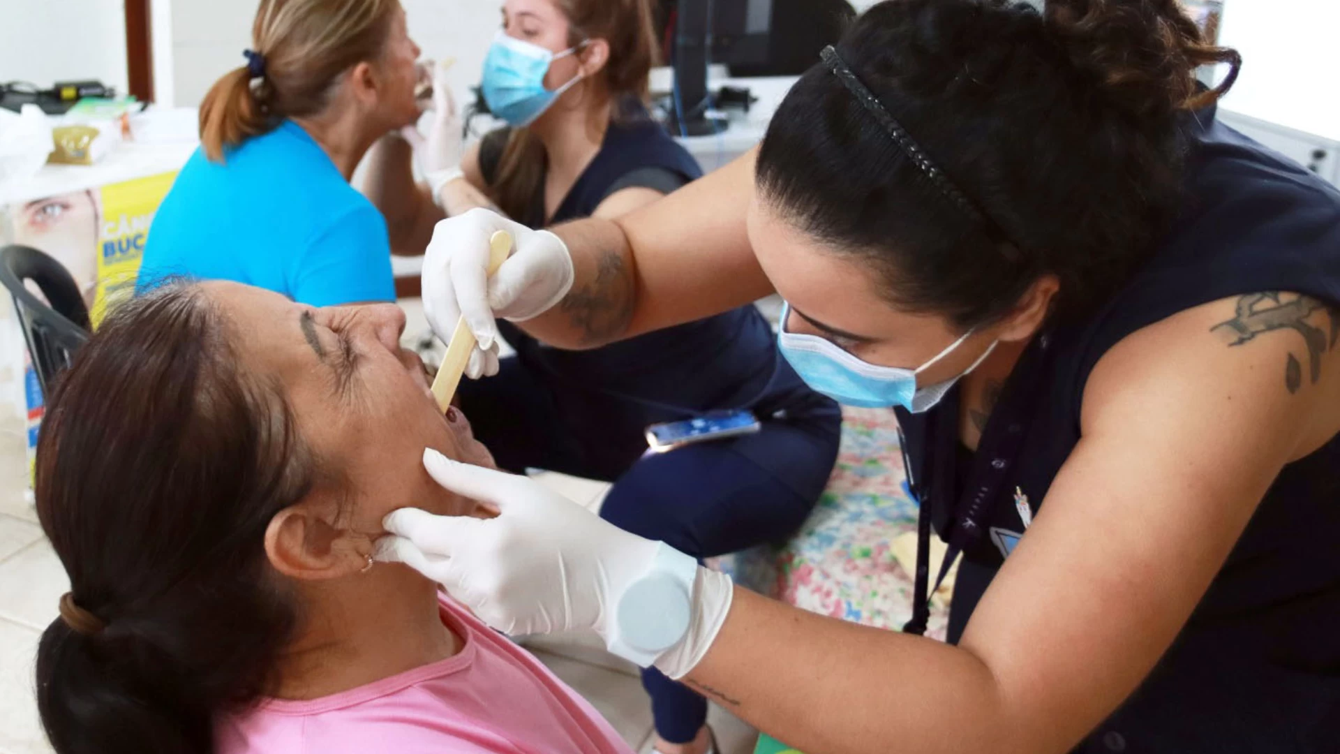 #PraTodosVerem: imagens de mulheres durante o atendimento do ‘Projeto Saúde Bucal”. Fim da descrição.