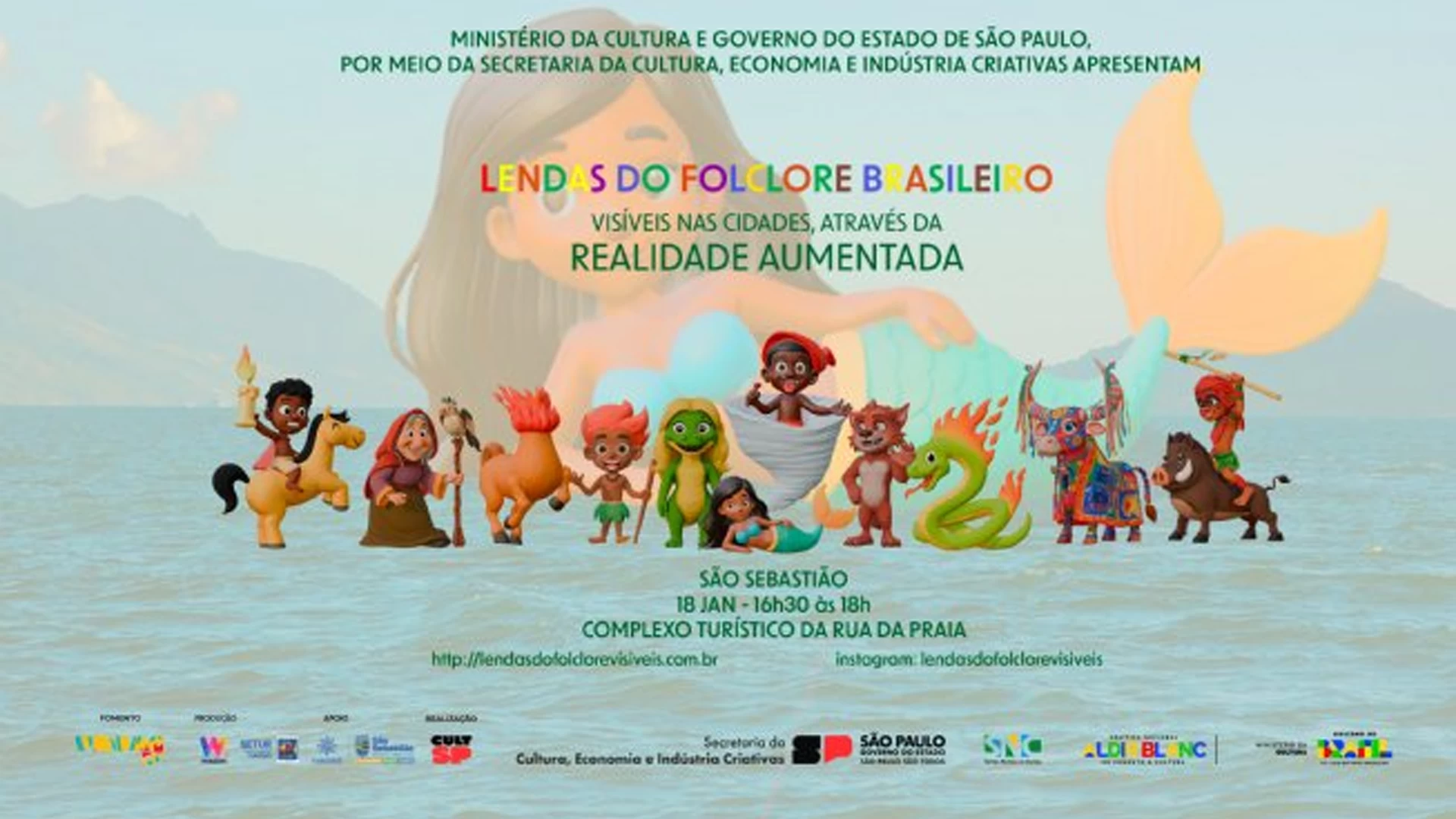 O município de São Sebastião recebe, neste domingo (18/01), o projeto ‘Lendas do Folclore Brasileiro Visível nas Cidades, através de Realidade Aumentada (RA)’, uma experiência cultural gratuita que une tecnologia, arte e tradição popular. A atividade ocorre das 16h30 às 18h, no quiosque para visitantes na Praça do Artesão do Complexo Turístico da Rua da Praia, no Centro Histórico.